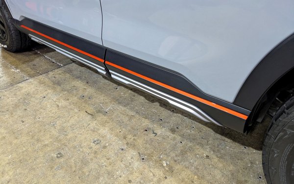 展出的四款TrailSport HRC Concept概念車,引擎蓋中央為霧面黑色塗裝,前保桿上加上全新的護板,前格柵加裝了白色燈飾,車側也有黑色車身防刮飾板的包覆,另有全新的輪圈搭配全新的全地形輪胎,以及換上新的車頂行李架、車貼,以及我們在Type R車款上會看到鮮紅色的飾條,尾門也裝飾著「Trail Sport」和「HRC」標誌。